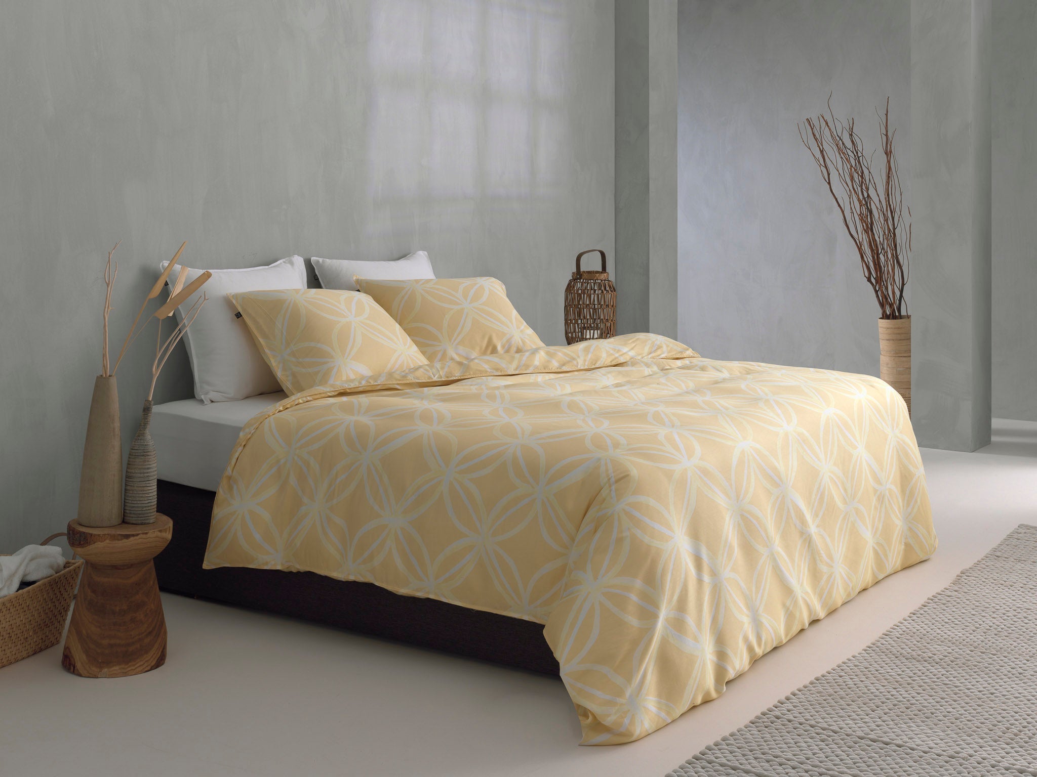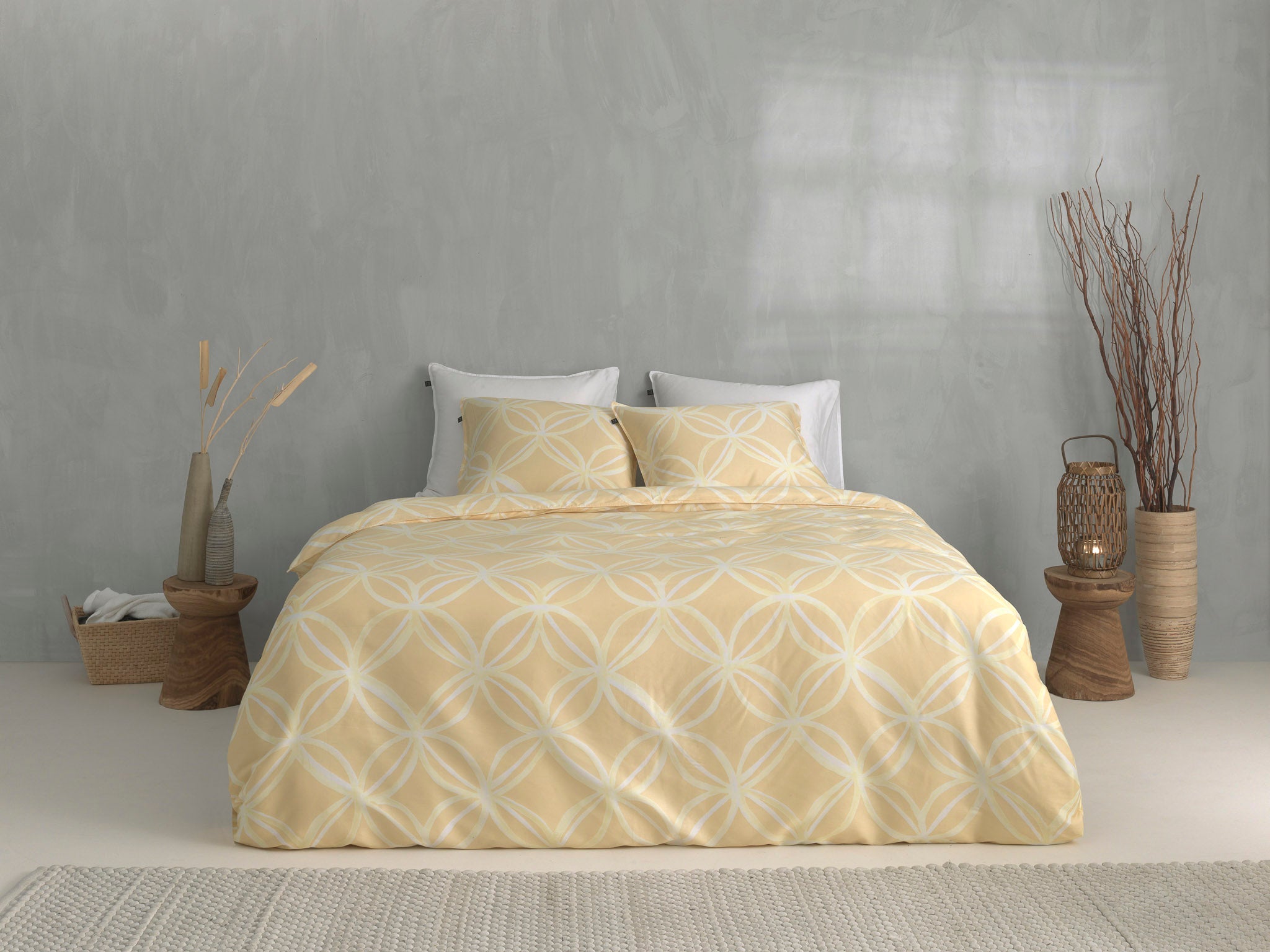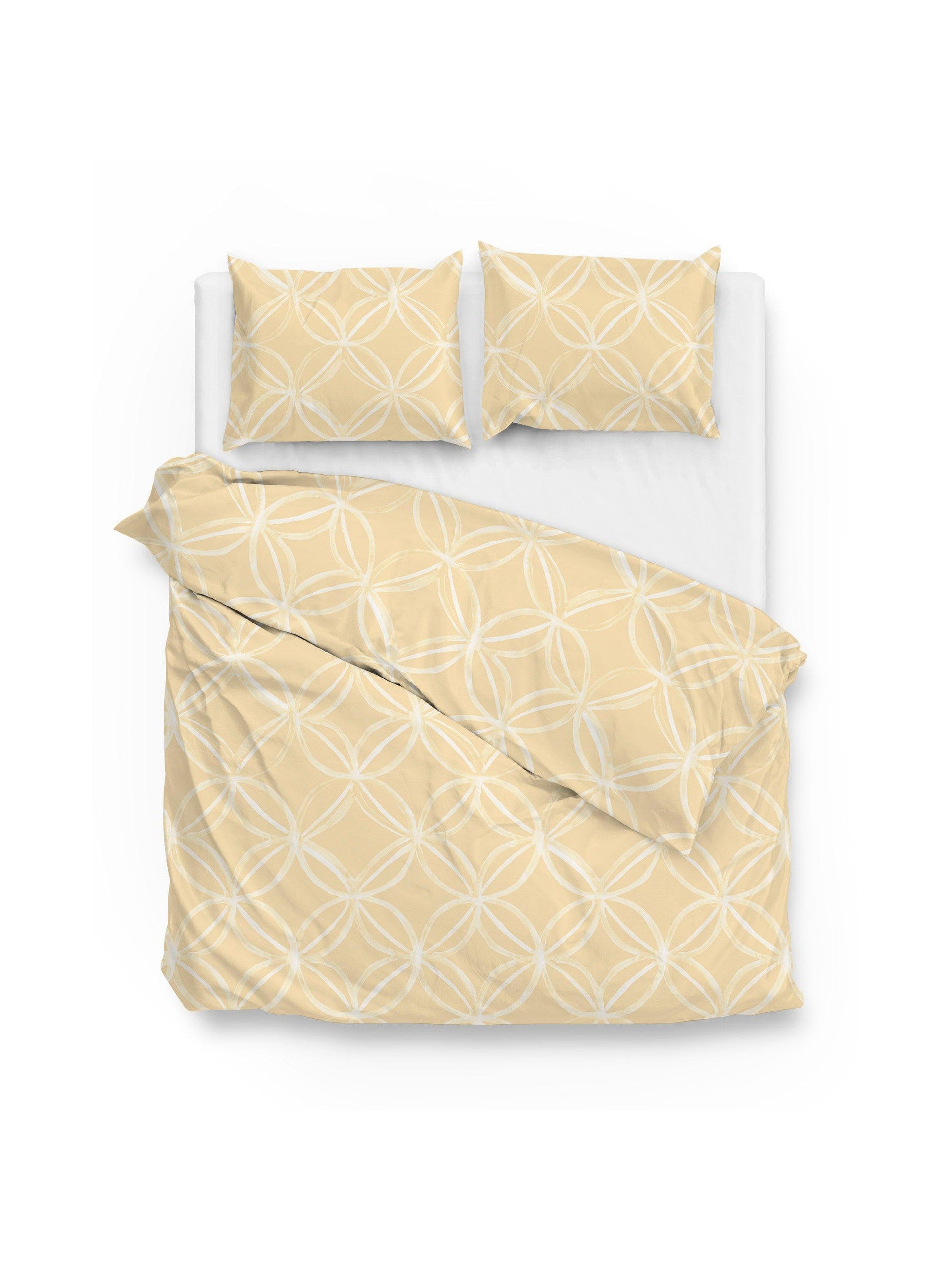Glamorous dekbedovertrek in pastelgeel met prachtig terugkerend dessin straalt ultieme klasse uit op het extra zachte dekbedovertrek Agnetha van het merk Zohome! Het panel print dessin in de kleur lichtgeel op een pastelgele achtergrond zorgt voor een luxe uitstraling en is vervaardigd van 100% ECO katoen-satijn. Katoen-satijn heeft een dichtere weving met meer draden, dit zorgt voor meer zachtheid. Door de satijnweving voelt de stof glad en zacht aan. Met een mooie glans en warme uitstraling. Satijn absorbeert vocht, ventileert en geeft een comfortabele nachtrust. Het dekbedovertrek is hierdoor elegant en stijlvol te combineren in ieder slaapkamerinterieur. Wordt geleverd met bijpassende kussensloop.