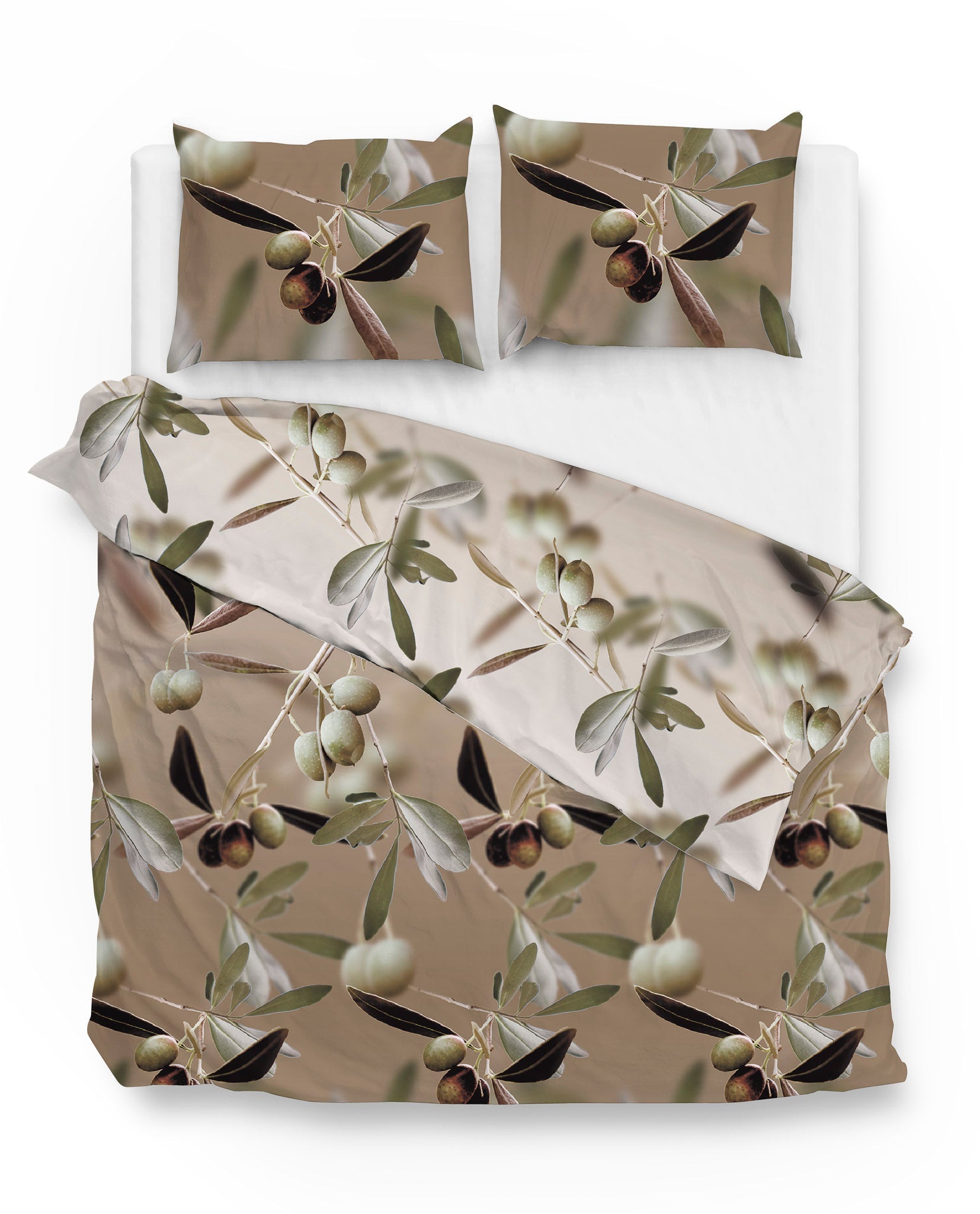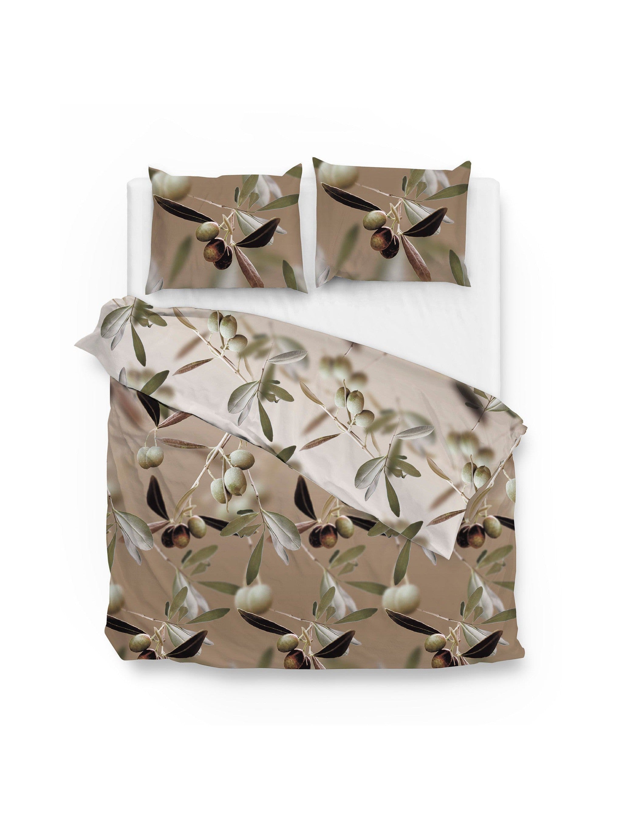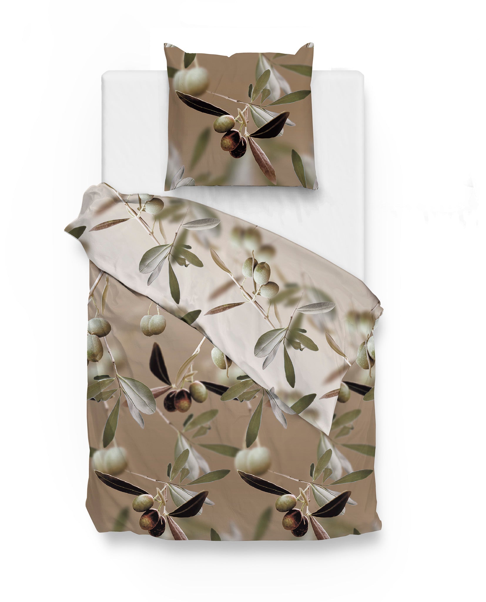 Dekbedovertrek Mylie heeft een mooie print met olijftakken met groene olijven. Het Zohome overtrek geeft jouw slaapkamer een mediterrane sfeer. Vervaardigd uit 100% hoogwaardig katoen-satijn. Het materiaal past zich makkelijk aan je lichaamstemperatuur aan. Daarnaast voelt het zacht en soepel aan op je huid. Inclusief kussensloop(en) met bijpassende print. Verkrijgbaar in verschillende afmetingen.