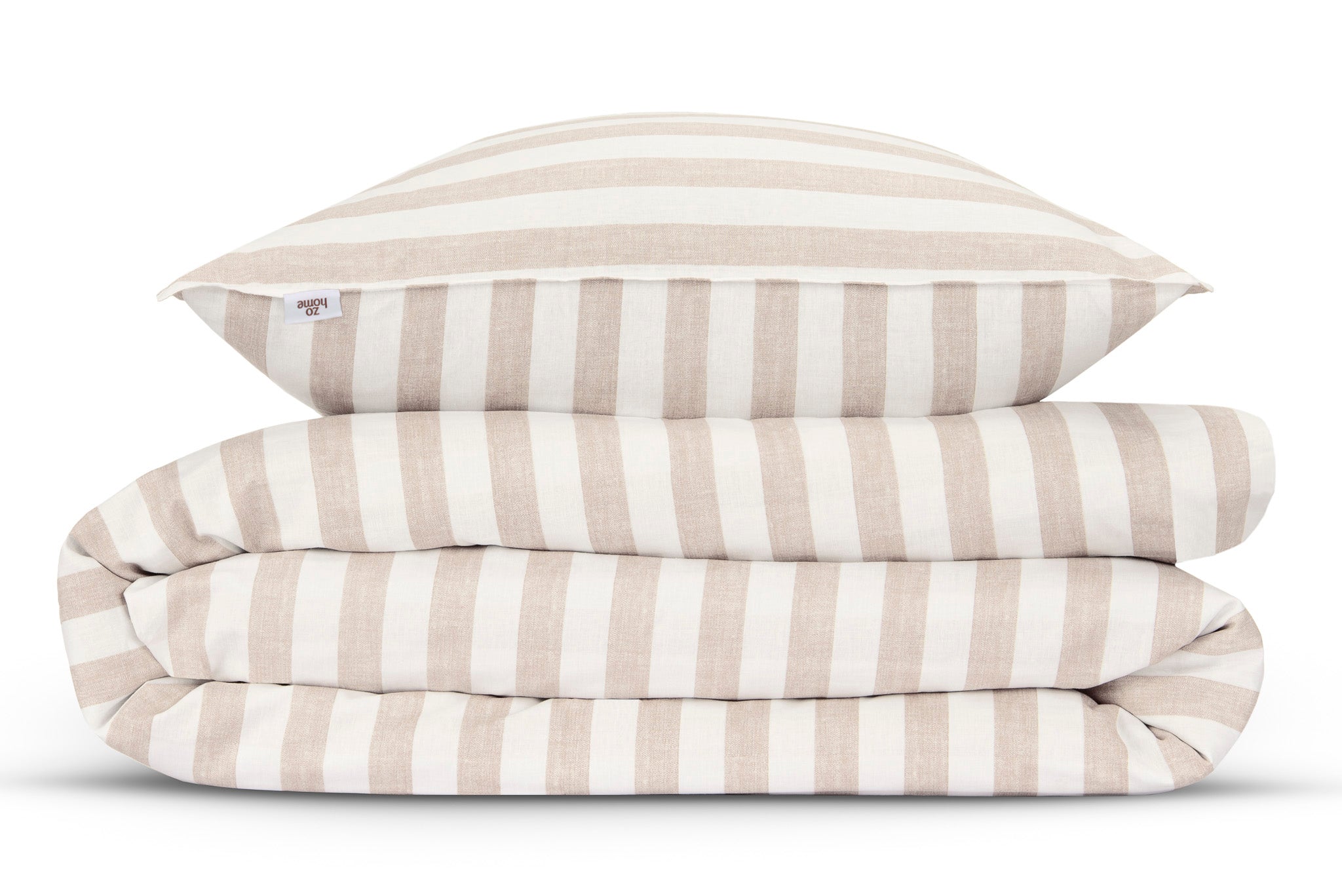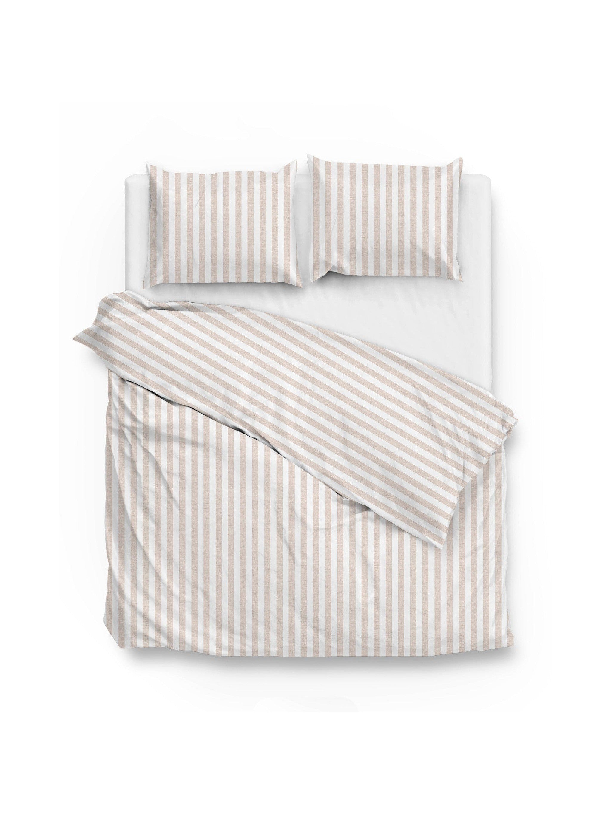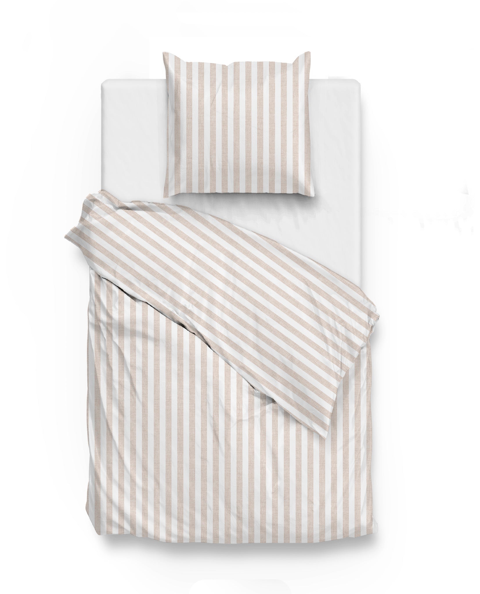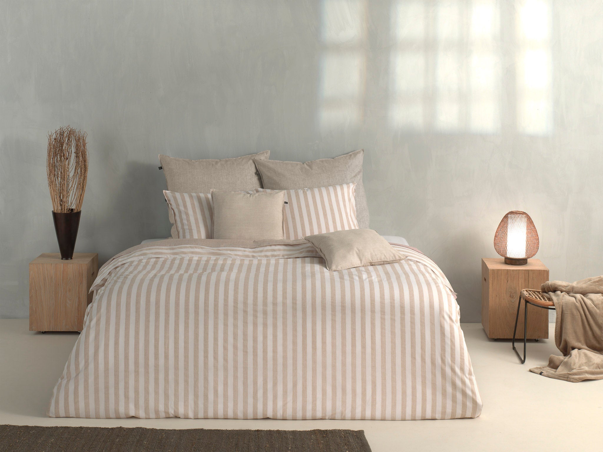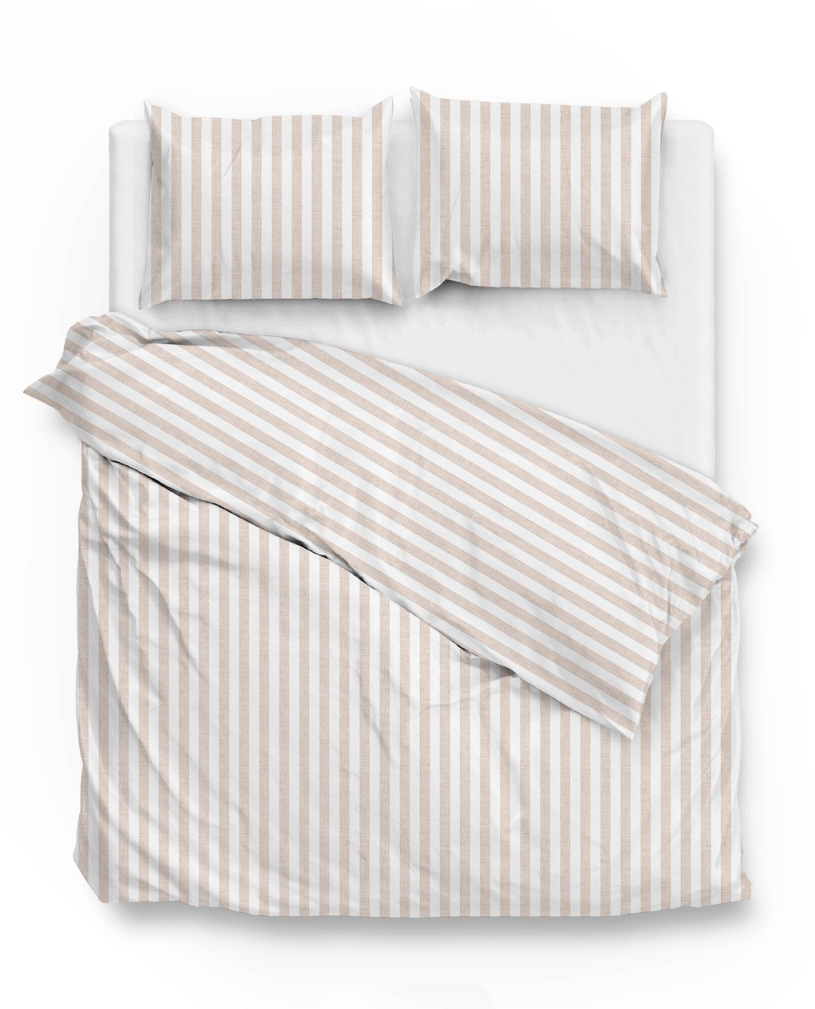 Geef je slaapkamer een serene en stijlvolle uitstraling met het Banda di Lino dekbedovertrek in Sandy Beige. Het subtiele beige patroon met een gestreept design voegt een zachte, elegante flair toe aan je interieur. Gemaakt van 100% zacht katoen dat ademt en vocht absorbeert, biedt dit dekbedovertrek het perfecte comfort voor een rustgevende nachtrust.