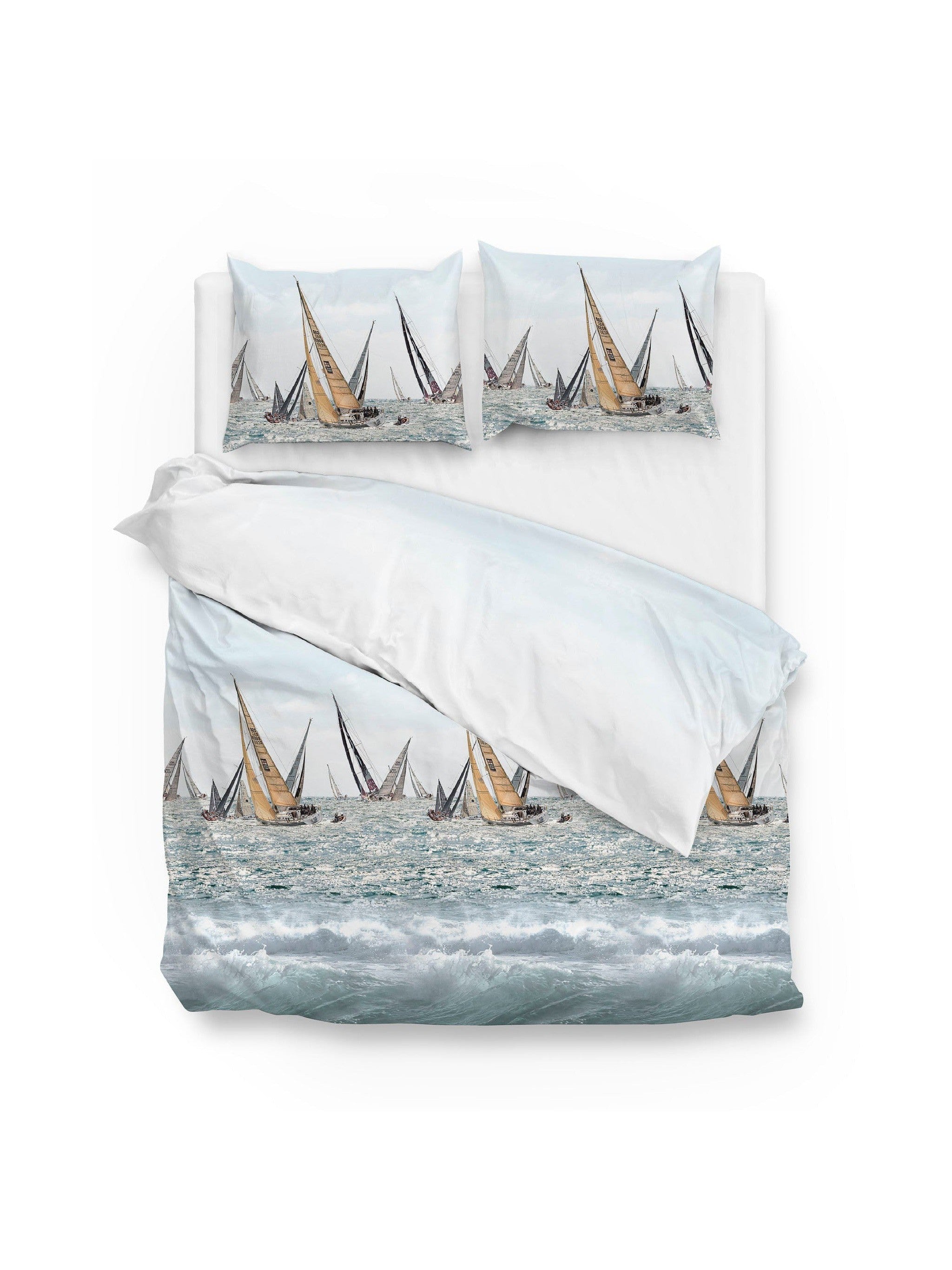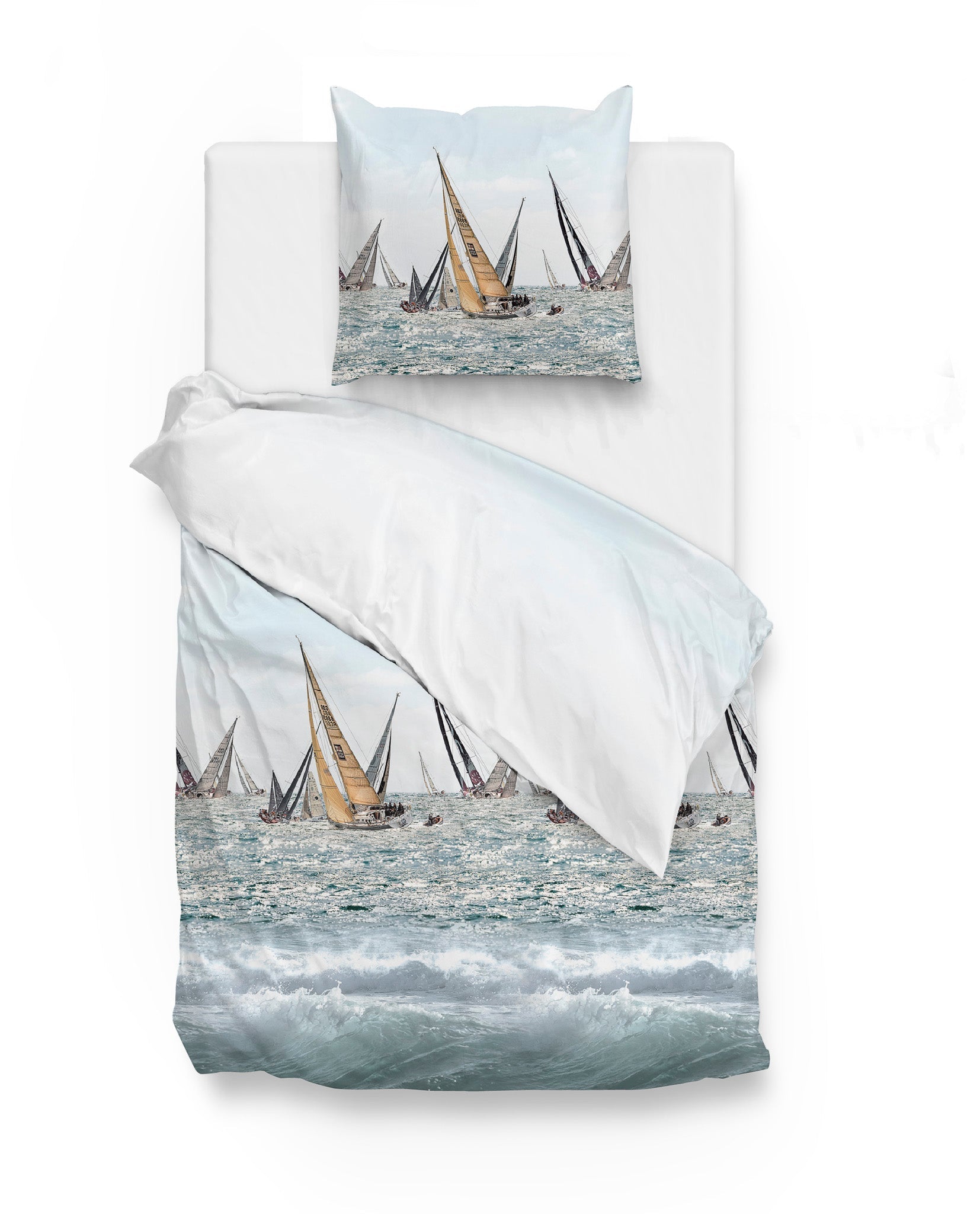 Met dit maritieme dekbedovertrek Kacie van Zohome dobber je lekker weg. Het overtrek heeft een fotoprint met zeilboten. Het dekbedovertrek geeft je iedere nacht een fijn vakantiegevoel. Het materiaal van het overtrek is 100% katoen-satijn. Katoen-satijn heeft een hoge kwaliteit en is ademend en vochtregulerend. Met bijpassende kussensloop(en) met zeilboten.