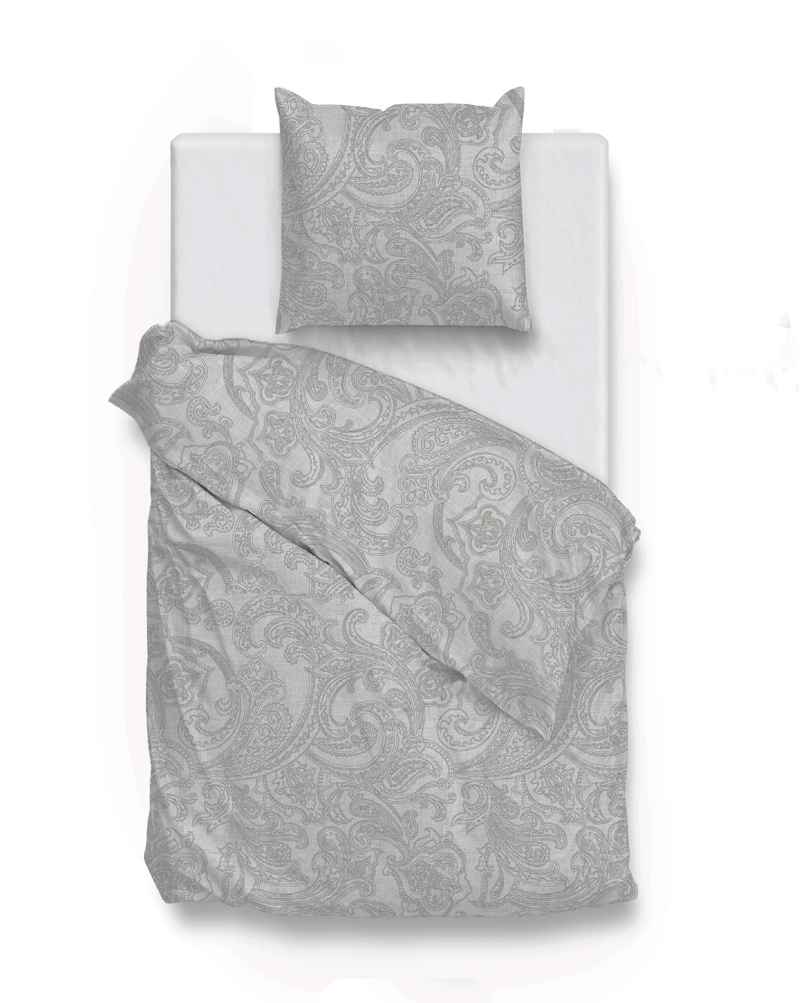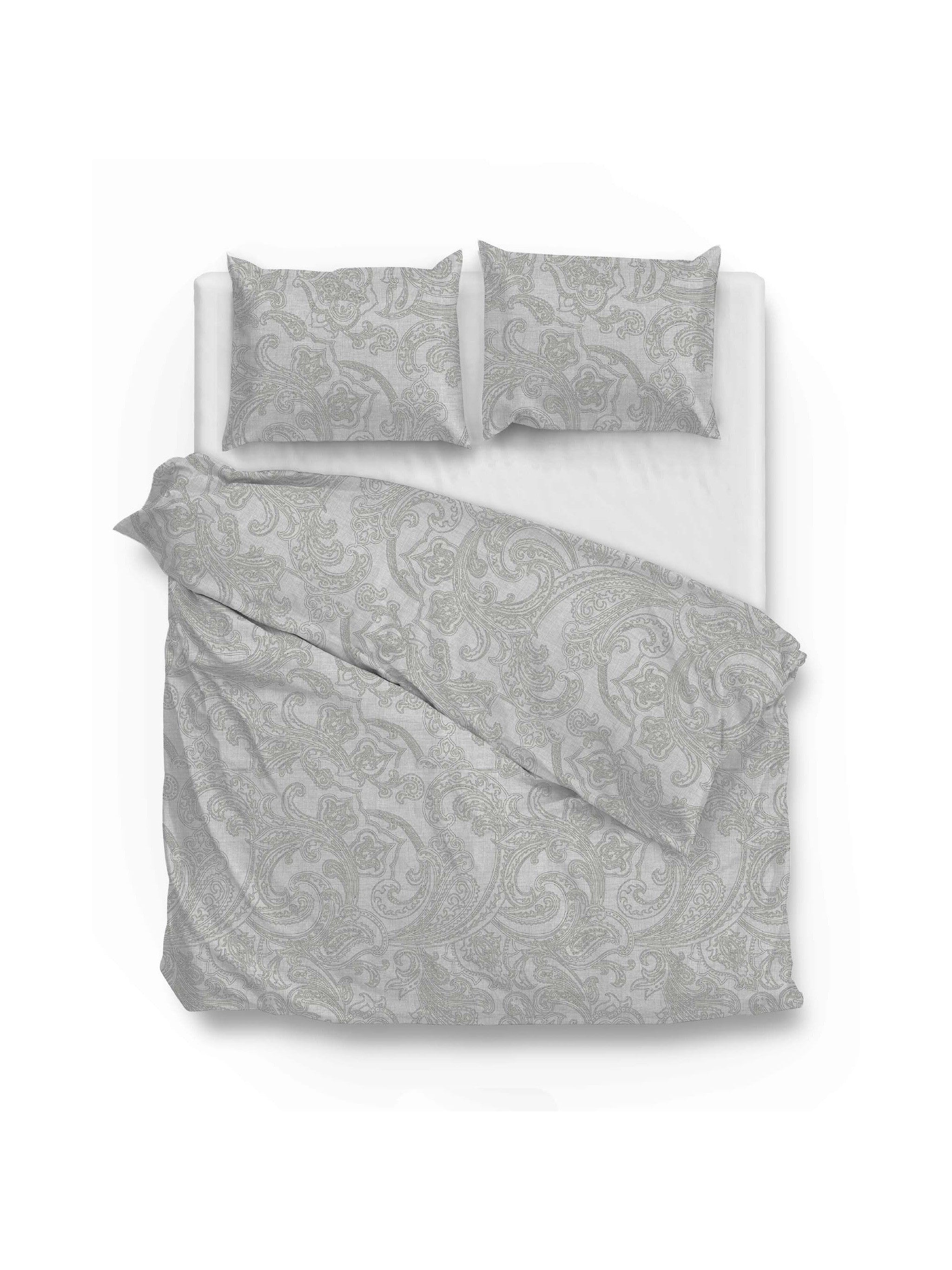 Geef je slaapkamer een verfijnde uitstraling met het Paisley di Lino Dove Grey dekbedovertrek van Zohome. Dit overtrek heeft een tijdloos en klassiek dessin in een subtiele, lichtgrijze kleur die rust en elegantie uitstraalt.