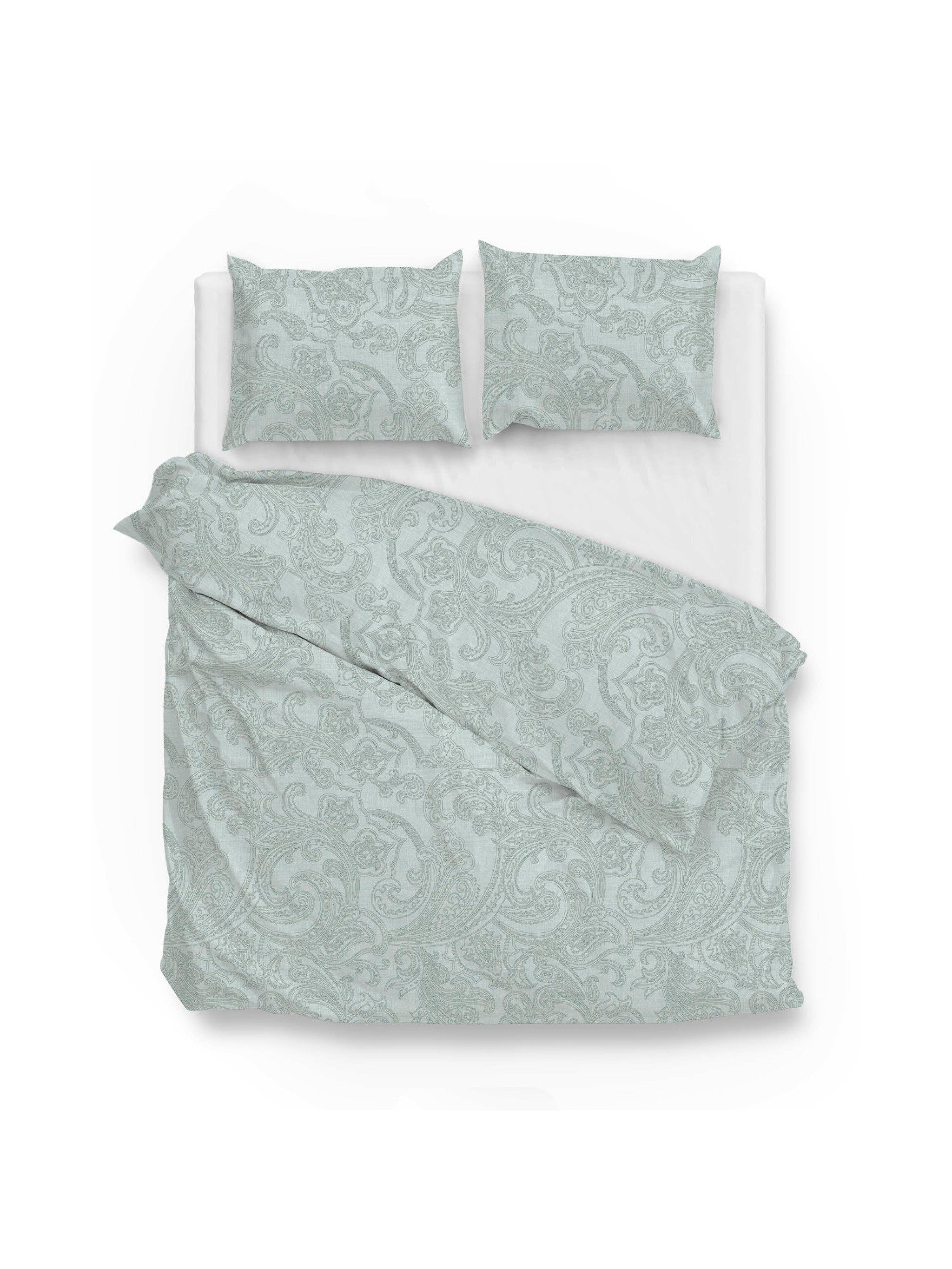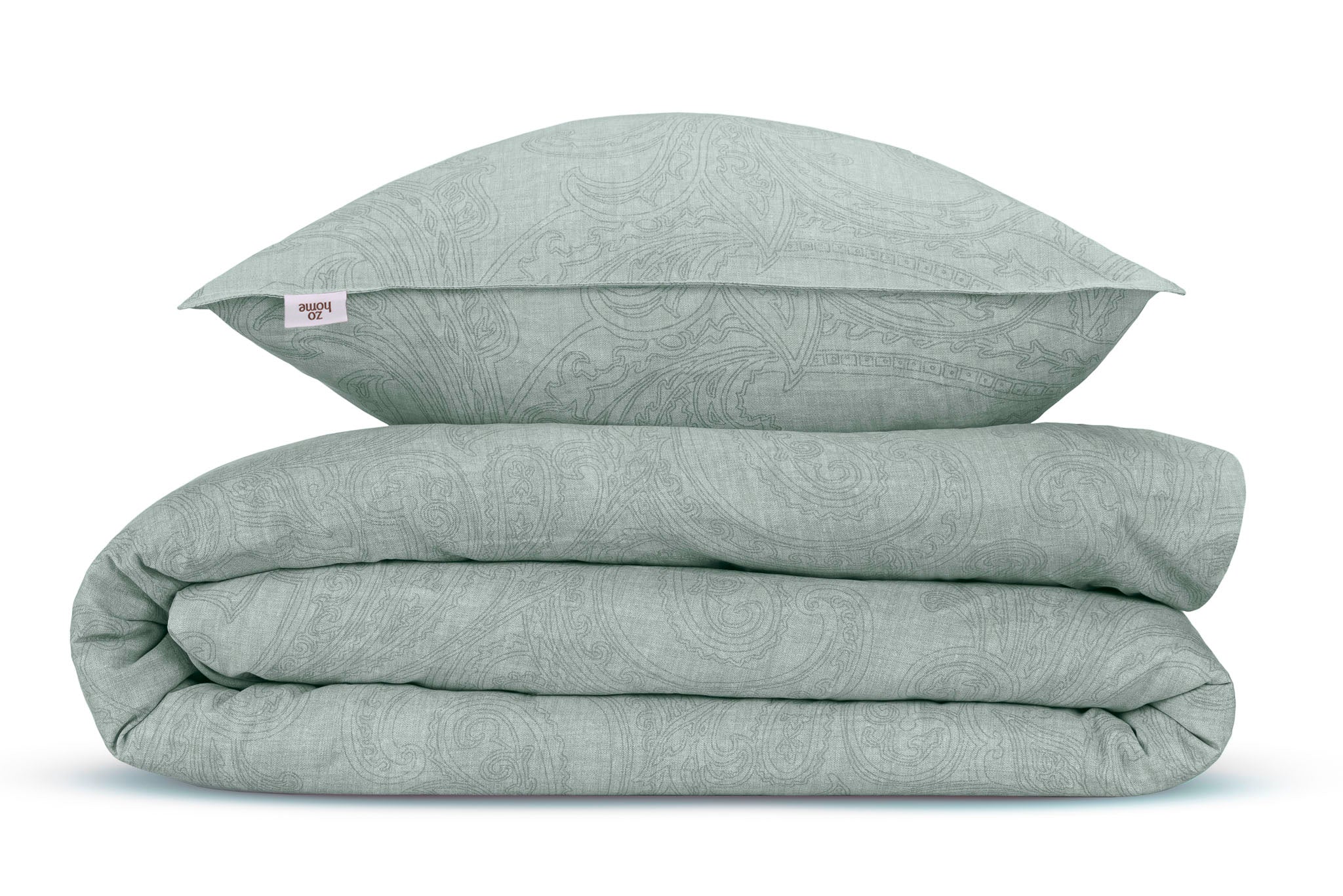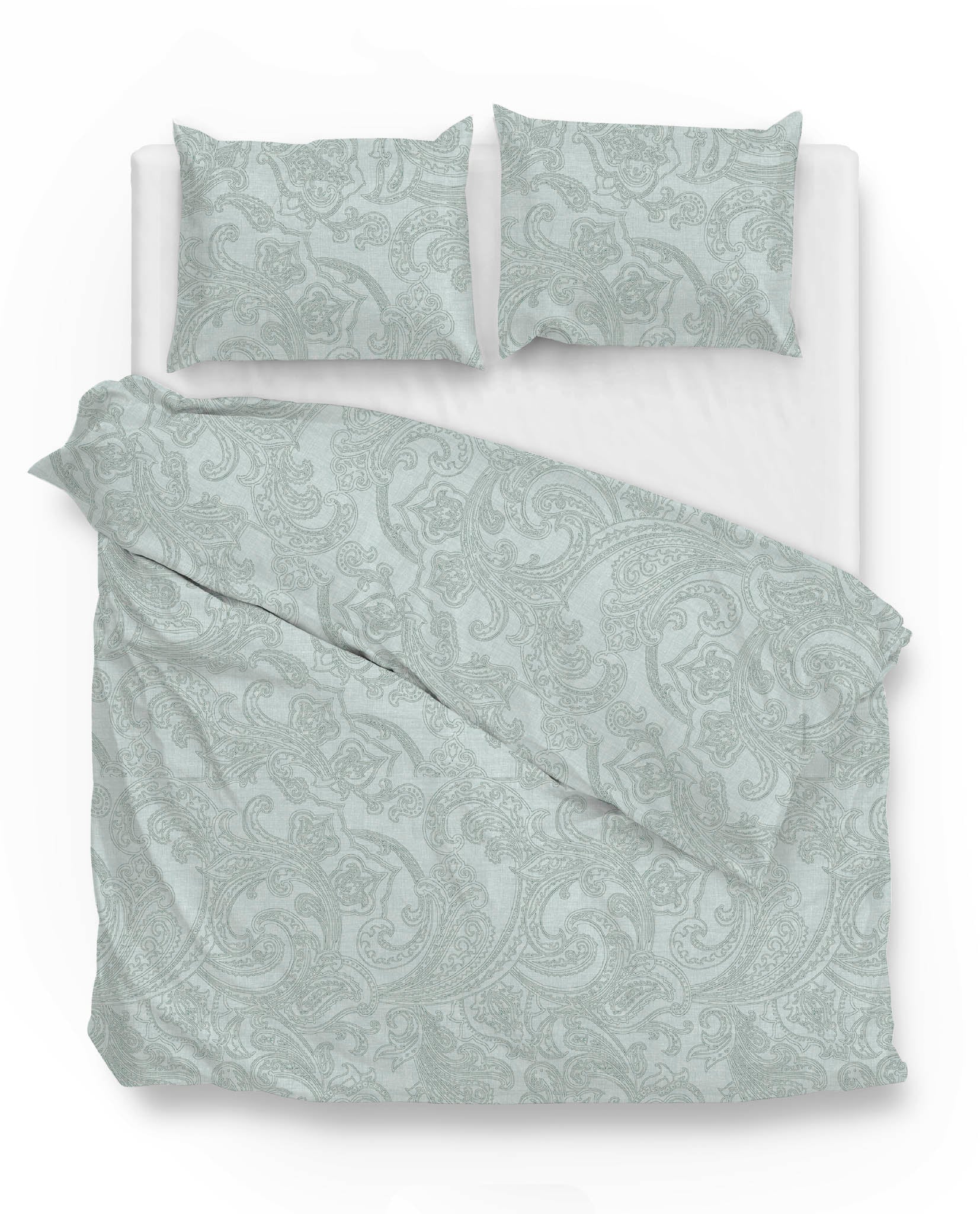 Haal de luxe linnenlook in huis met Paisley di Lino Mint Green van het trendy merk Zohome! Dit prachtige overtrek heeft een tijdloos klassiek Victoriaans patroon in een kalmerende lichtgroene tint. Het zorgt voor een frisse en elegante uitstraling in je slaapkamer.