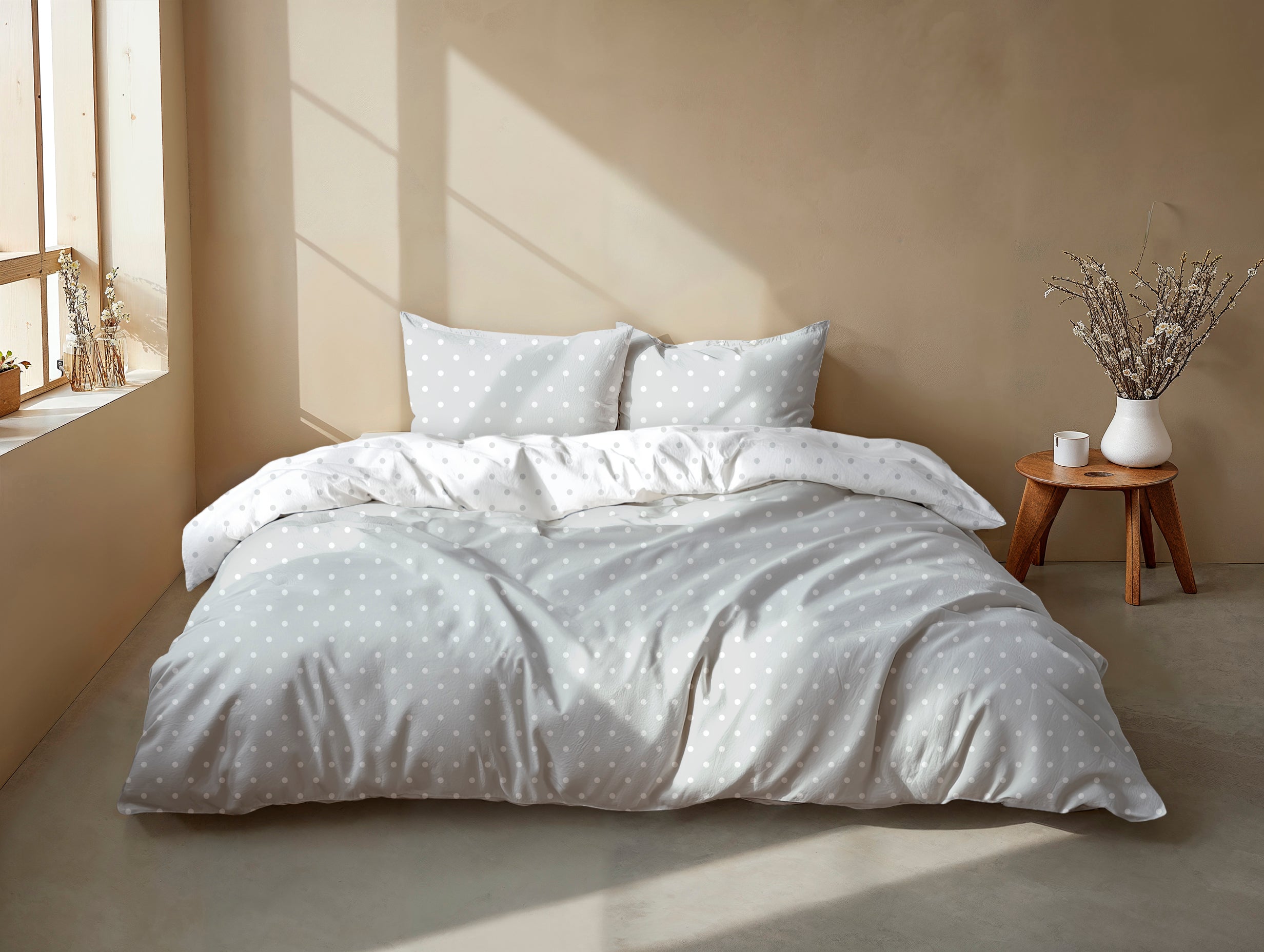 Punta di Cotone van Zohome is een dekbedovertrek gemaakt van 100% katoen. Het speelse stippenpatroon en de dubbelzijdige uitvoering zorgen ervoor dat je het op twee manieren kunt stylen. Verkrijgbaar in verschillende kleuren en geleverd met bijpassende kussenslopen.