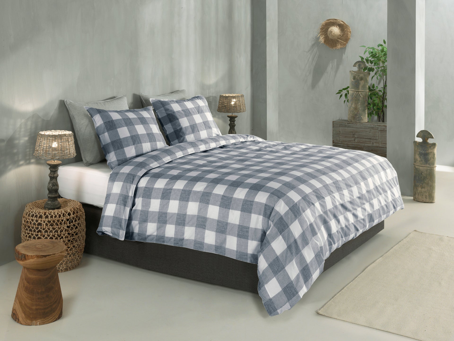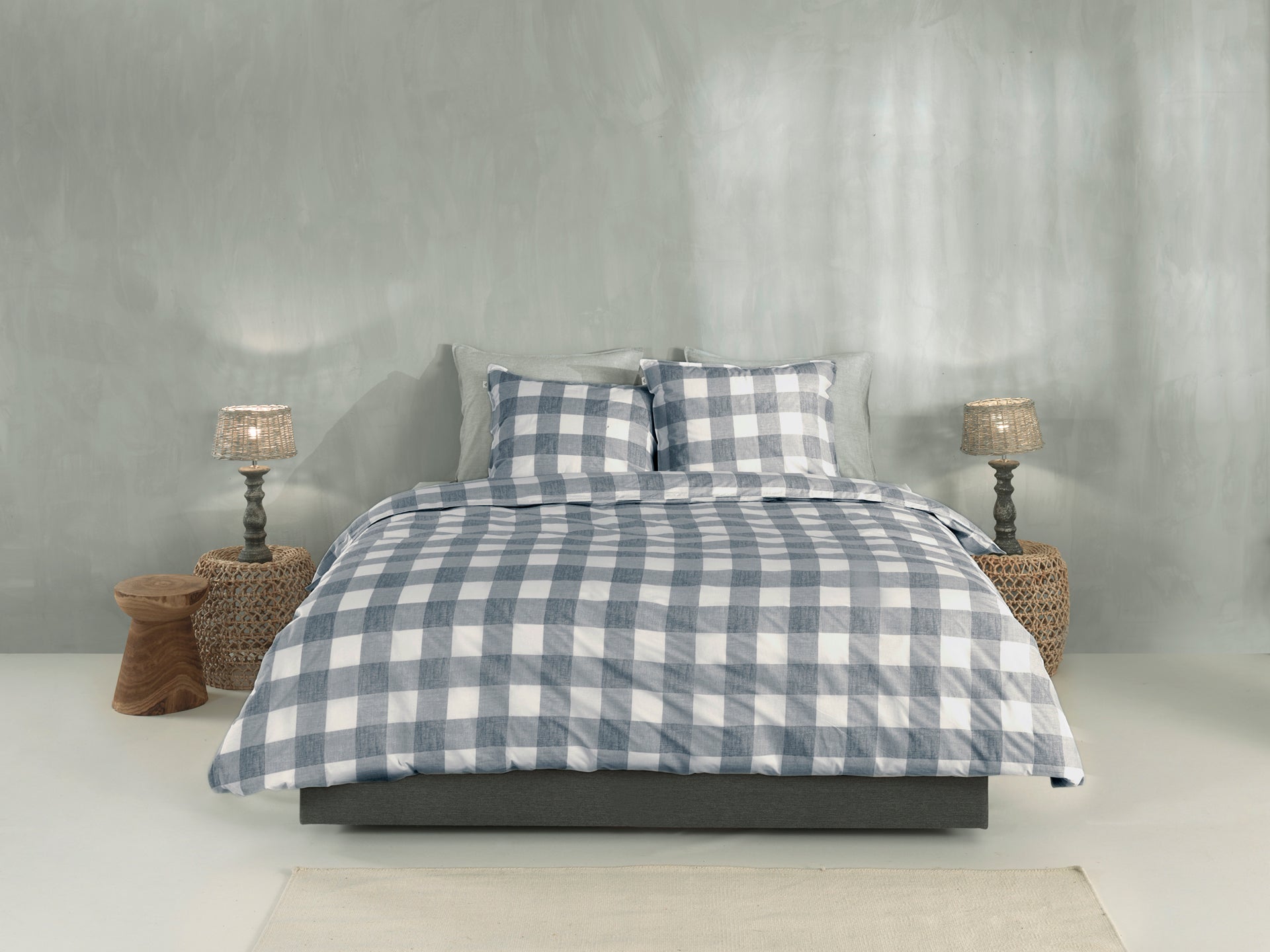 Het tijdloze ruitdessin geeft het overtrek een moderne uitstraling, terwijl de Denim kleur een rustige en gezellige sfeer toevoegt aan je slaapkamerinterieur. Het is eenvoudig te combineren met verschillende stijlen en wordt geleverd met bijpassende kussenslopen voor een compleet en harmonieus geheel.